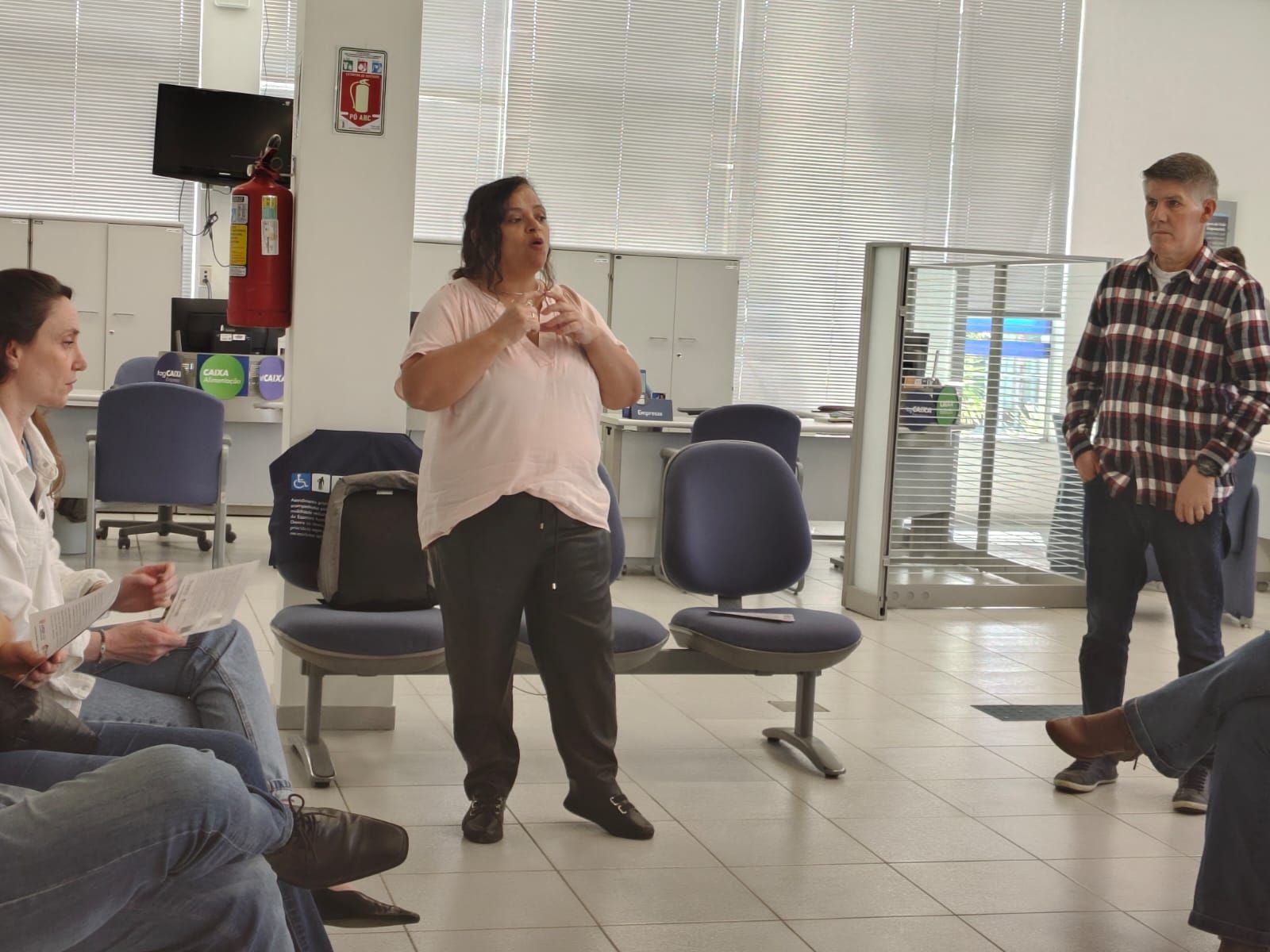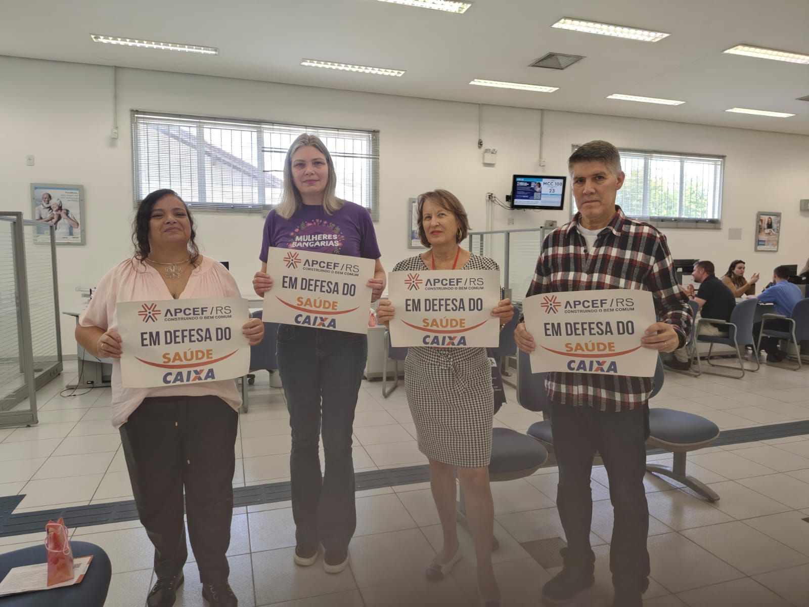 Durante as atividades, a diretora de Saúde e Relações de Trabalho da APCEF/RS, Simoní Fernandes Medeiros, que também é titular do Comitê de Credenciamento, esteve acompanhada por representantes sindicais, visitando agências da Caixa, dialogando com empregad@s e esclarecendo dúvidas sobre o funcionamento do processo de credenciamento.