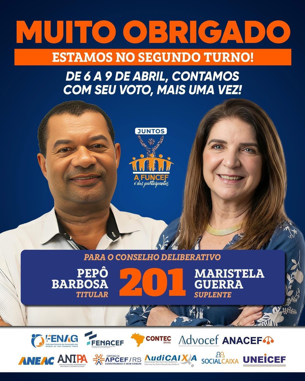 Para o Conselho Deliberativo, as três candidaturas mais votadas foras as de Pepô Barbosa (26,23%) , Naiara Machado, presidenta da APCEF/RS (22,45%) e Selim Oliveira (20,91%). Essas três candidaturas disputarão o segundo turno.