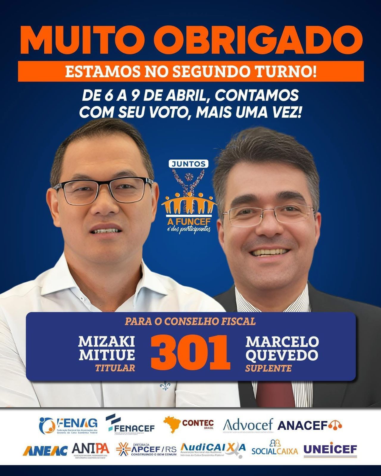 Já no Conselho Fiscal, Mizaki Mitiue obteve 43,99% dos votos, enquanto Jessy Soares somou 36,75%, garantindo ambos na próxima fase.