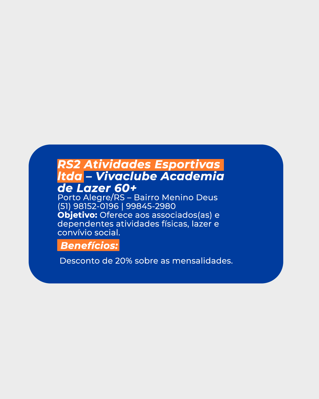 São parcerias pensadas para incentivar hábitos saudáveis, o convívio social e uma vida mais ativa, oferecendo serviços e benefícios que contribuem para a saúde, o lazer e a qualidade de vida de você e da sua família.