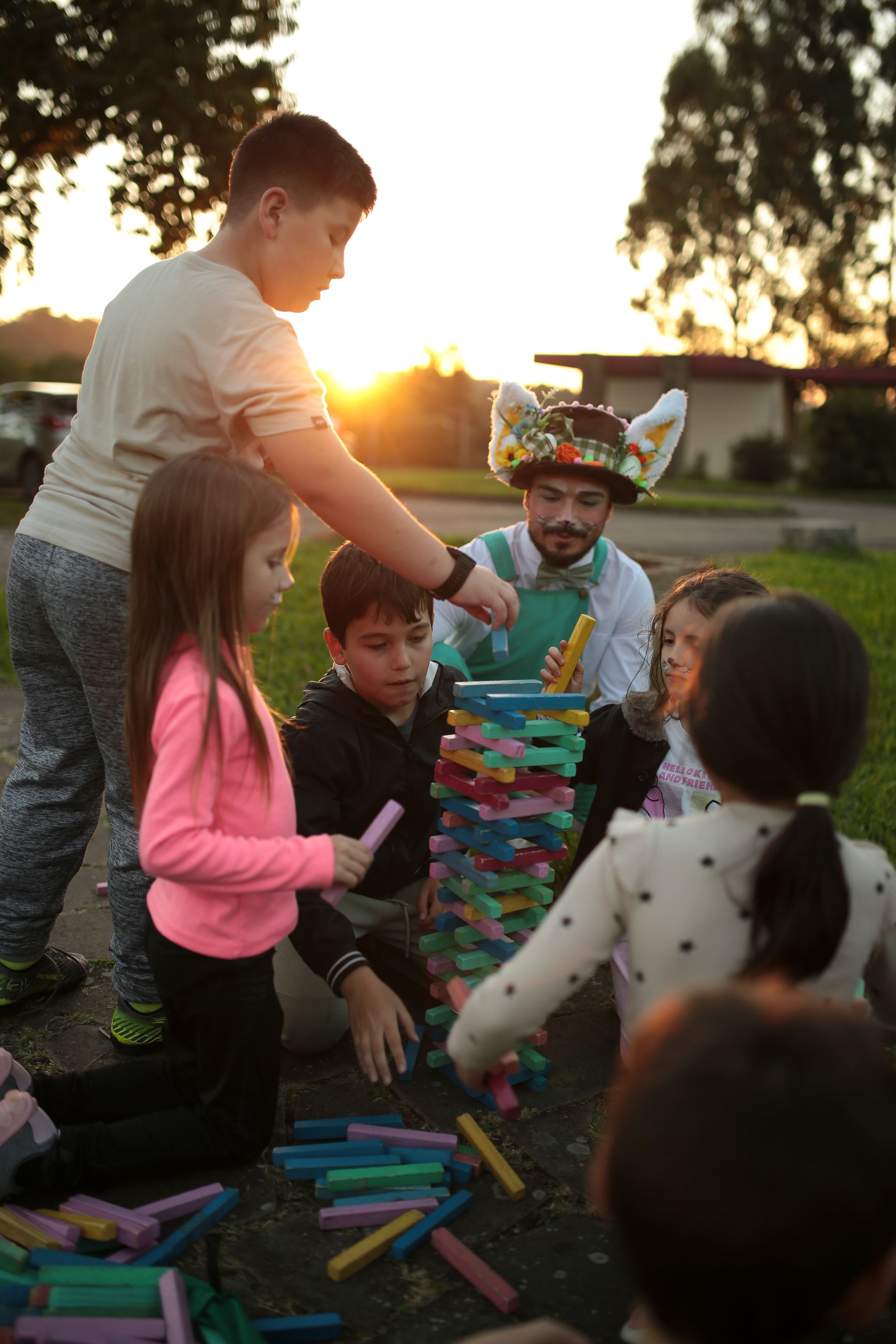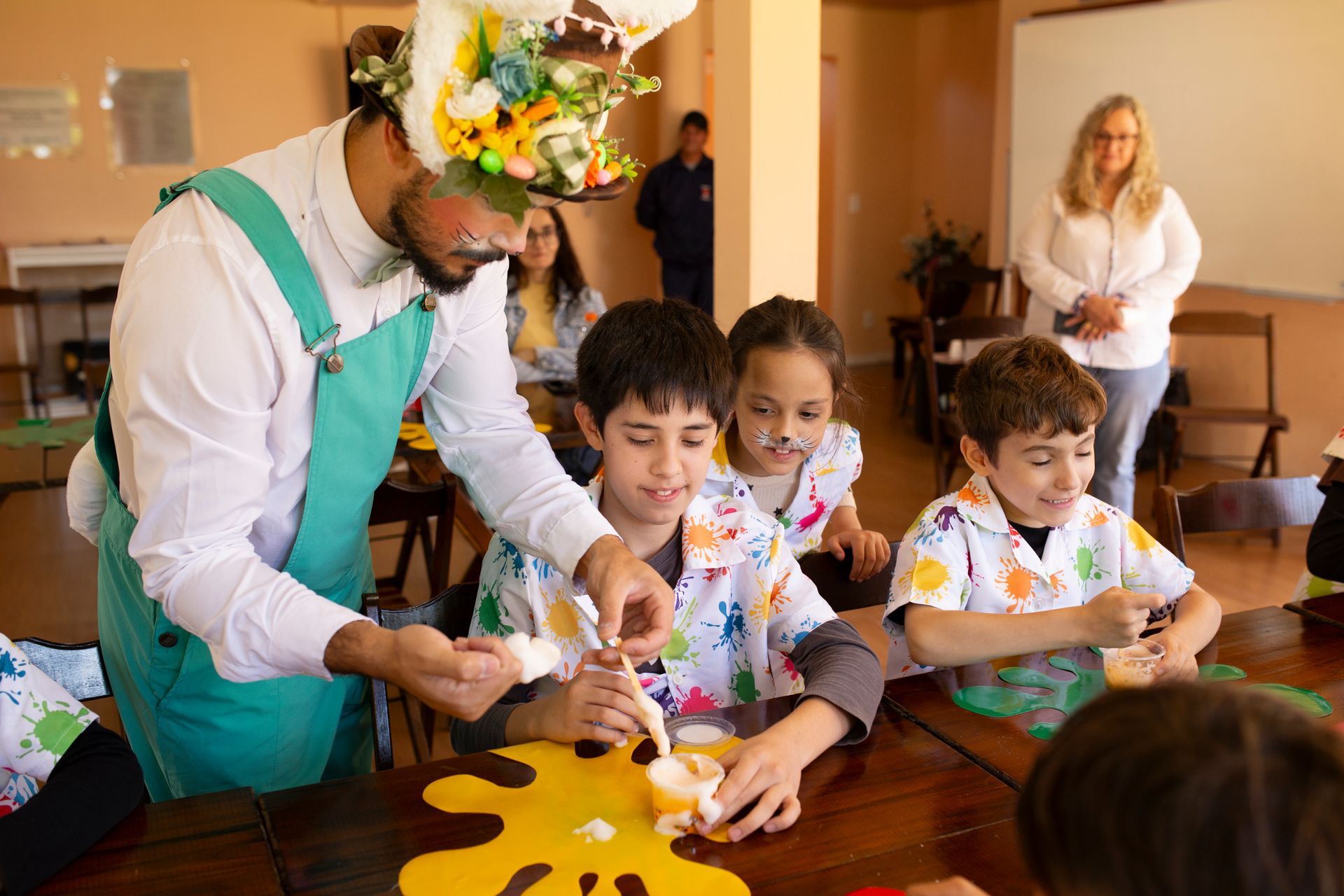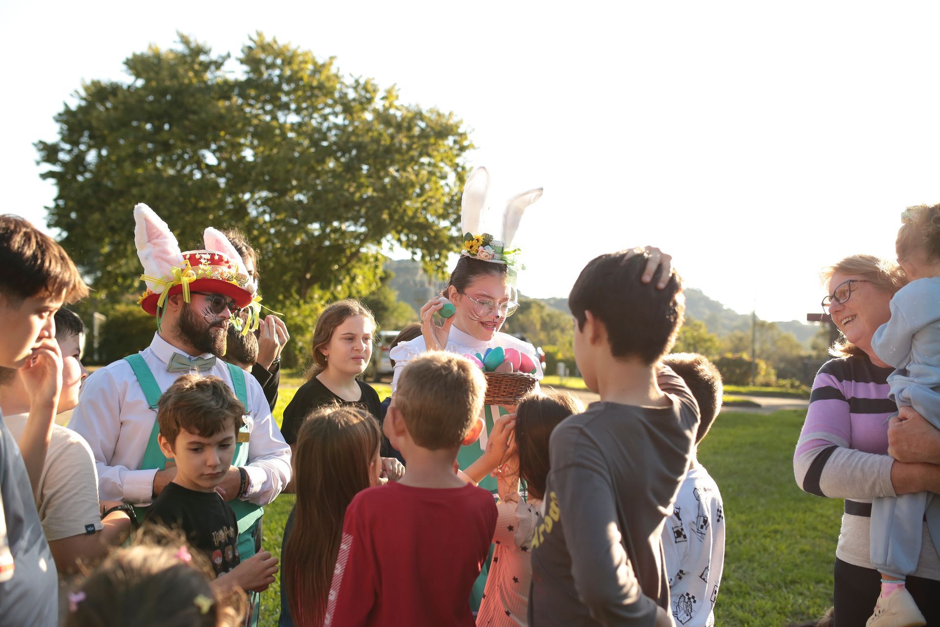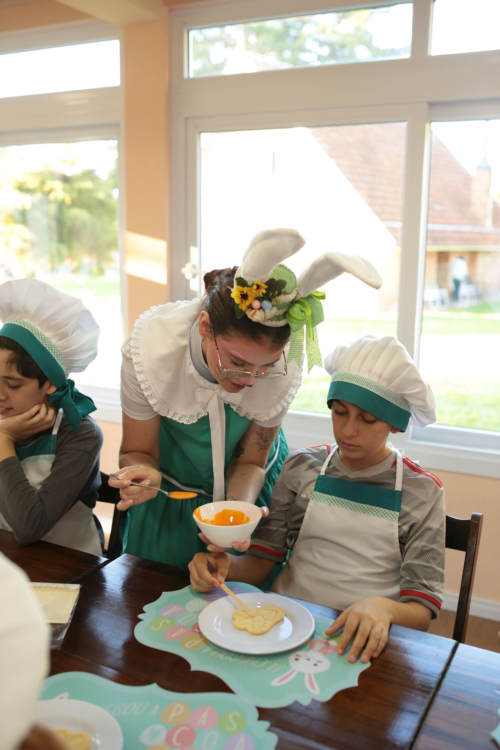 Na tarde de sábado, as crianças participaram de oficinas recreativas, como slime, culinária e atividades lúdicas, enquanto os pais puderam aproveitar o dia ensolarado, confraternizar com outras famílias e compartilhar bons momentos, inclusive com o tradicional chimarrão. A presença do coelho da Páscoa encantou as crianças, tornando a experiência ainda mais especial.