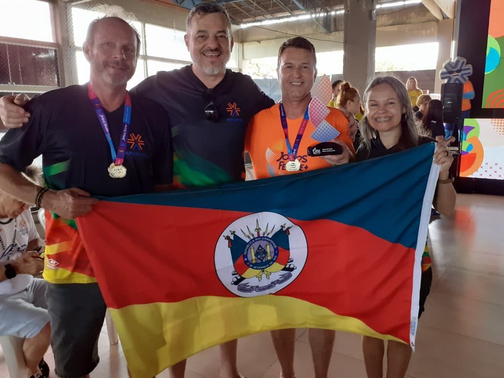 A presidenta Naiara Machado da Silva comemora: “É com muita alegria que a delegação da APCEF/RS encerra a sua participação nos Jogos Fenae+, no Maranhão, celebrando, antes de tudo, a integração, a valorização da saúde e a força do esporte como instrumentos de união e bem-estar entre os colegas. No total, foram 5 medalhas de ouro, 2 de prata e 1 de bronze, mas a maior conquista, que não precisa de pódio, é a sensação de dever cumprido por parte de cada um(a) de nossos atletas. Parabéns, mil vezes parabéns aos gaúchos e gaúchas!”