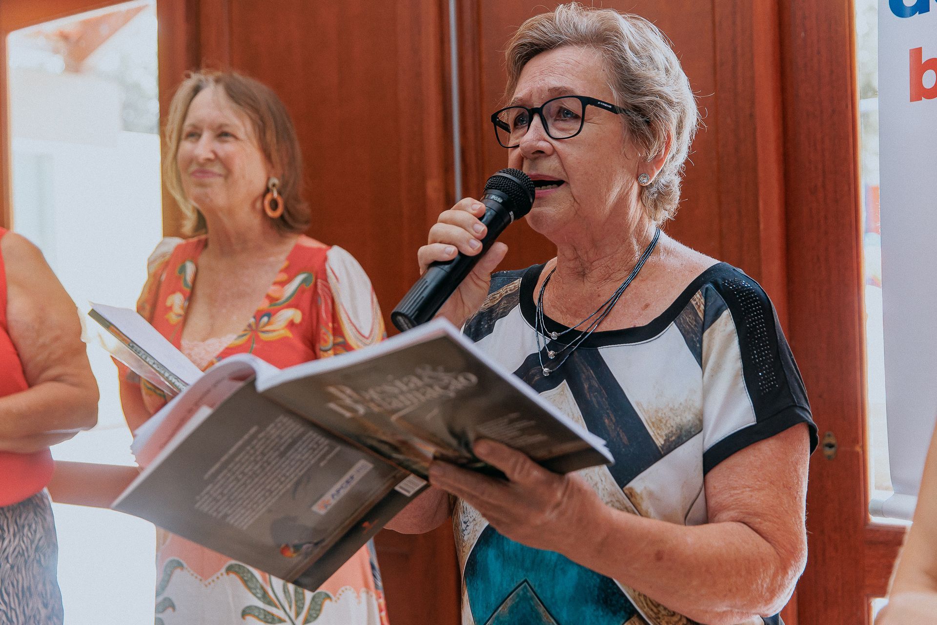 Na sequência, a associada Salete Maria Mattje, participante da Oficina Literária da APCEF/RS, realizou a leitura de uma poesia, emocionando os presentes. Logo após, foi realizado um brinde coletivo, marcando a abertura do almoço com churrasco e sobremesa, em um clima de confraternização e celebração da vida.