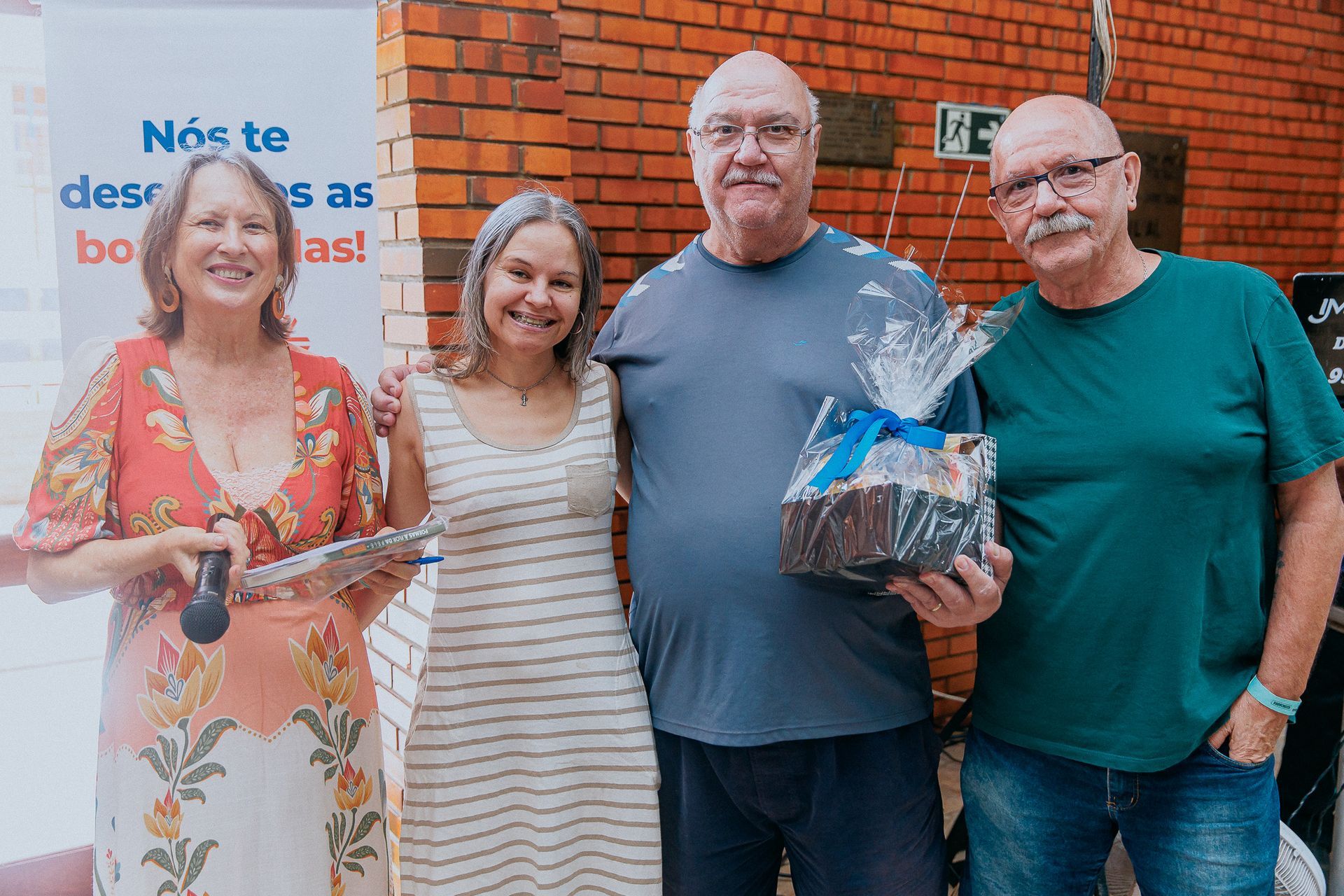 A programação ocorreu das 9h às 18h, na Sede A da APCEF/RS, em Porto Alegre, e contou com a participação de mais de 160 pessoas. Os(as) presentes foram recepcionados por Célia Zingler e Loiva Vallerão - respectivamente, diretora e codiretor de Aposentadas, Aposentados e Previdência - dando início a uma manhã marcada por reencontros, alegria e um café da manhã especial.